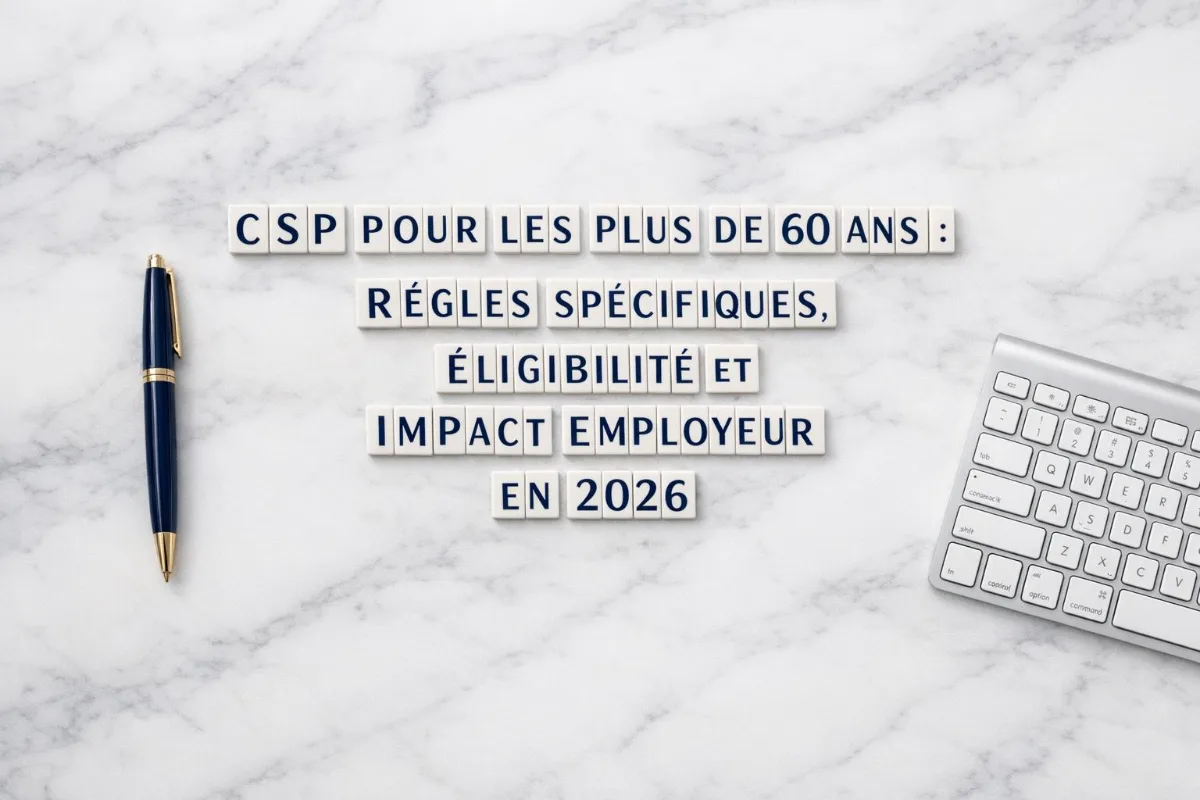 Pour les salariés de plus de 60 ans, le CSP prend une dimension particulière. Leur repositionnement sur le marché du travail est statistiquement plus long : selon la Dares, le taux de retour à l'emploi durable des 55-64 ans licenciés économiques reste inférieur de 15 points à celui des 25-49 ans. Le dispositif leur offre un niveau d'indemnisation supérieur et un accompagnement opérationnel pendant la période de transition. Toutefois, l'articulation avec les droits à la retraite à taux plein crée des règles d'éligibilité spécifiques que l'employeur doit maîtriser avant toute notification de licenciement.